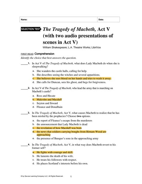 Read Online Tragedy Macbeth Act 5 Selection Test Answers Reader